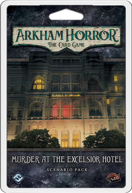 With time running out before you are discovered and surely blamed for the horrific events that have occurred at the Excelsior, you must choose a path of action and follow it. This may steer you towards any one of the many possible leads kept in the Leads deck. In your desperate search, you may uncover a lost key or forgotten locket, or some sort of mysterious device you cannot hope to understand. Whatever hints to the truth you uncover, and whichever leads your gut tells you to pursue will irrevocably alter your game experience throughout the scenario. With a remarkable ten possible versions of the final Act, Murder at the Excelsior Hotel immerses you in the feel of a true investigation like never before. Every action has a consequence and every trip to the Excelsior plays out differently. Will you find the true culprit and clear your name, or will you or another innocent soul be lost to the evil that resides in the Excelsior?