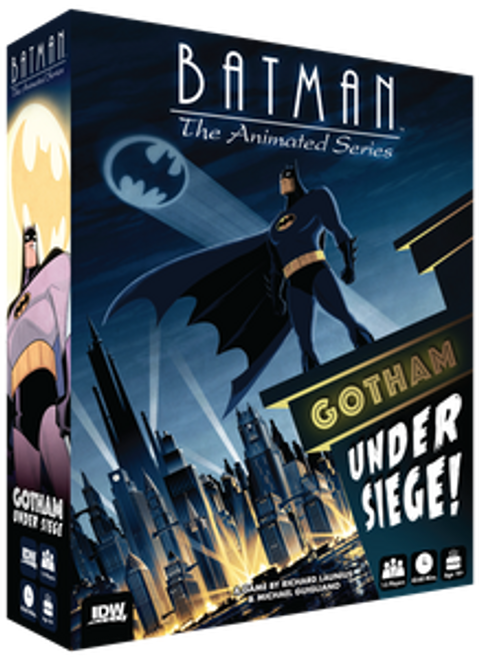 In Batman: The Animated Series – Gotham Under Siege, 1-5 players take on the role of the caped crusader and his allies, using dice allocation and threat management to defend Gotham from henchman and bosses and keep the city from being destroyed.