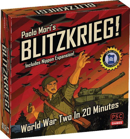 The perfect wargame for non-wargamers! Two players battle across the war’s most iconic theatres, winning key campaigns and building their military might. Blitzkrieg! is a challenging game with simple rules, a short playing time, and many tough decisions! Close campaigns, win war victory points, gain further resources and special weapons, and exploit strategic advantages as you play. The Nippon Expansion adds a new challenge to Blitzkrieg! What if the Axis coalition had won World War Two, and Germany invaded and occupied the United States of America? And … what if Japan then turned on its former ally and invaded German-held America? With the help of Godzilla? Blitzkrieg! was nominated for Best 2-Player Board Game at the 2019 Golden Geek Awards. It received the Dice Tower’s Seal of Excellence and was named the best 2-player game of the year by Tom Vasel!