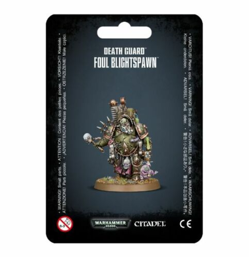This multi-part plastic kit contains the components necessary to assemble a Foul Blightspawn. He carries an enormous, sinister tank on his back – the incubatum – brimming with foul and noxious disease, which he squirts indiscriminately with malign cheerfulness. His plague sprayer in his left hand drips this vile concoction with no thought for where it may land. A crack in his armour shows the unpleasant extent of his modifications; the gears and pistons of a malignant churn are forcibly driven into his guts. His armour, as well as being covered in rot, features plenty of icons of Nurgle, skulls and rust. There’s even an optional Nurgling clutching a blight grenade to be added to the base.