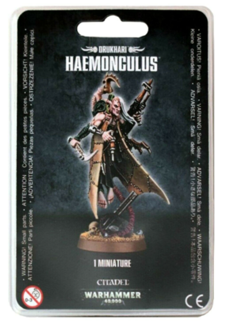 This 11-piece plastic kit makes one Haemonculus equipped with an array of deadly surgical instruments and a splinter pistol. His body is born aloft by a grotesquely elongated spine, as he drifts across the field of battle with a macabre elegance, gifting a slow and painful death to all those who cross its path.