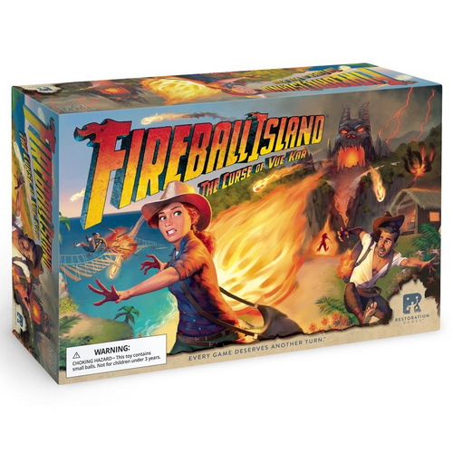 The new version of the game features a larger island, faster marbles, and fully redesigned game play. Players play cards to move their figures, manipulate the features on the island, and unleash Vul-Kar’s wrath.