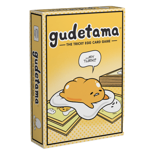 Gudetama: The Tricky Egg Card Game is a trick-taking game for 2-7 players in which the goal is to avoid winning the final trick! Take as many cards as you want, but don’t get scrambled on the last card!