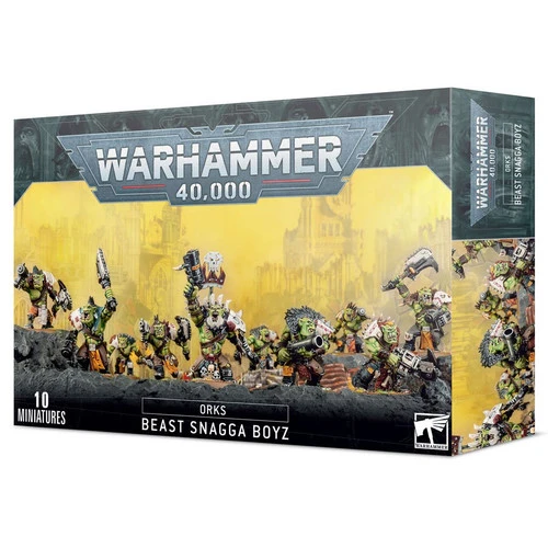 Contains 10 multi-part, multi-option plastic Citadel Miniatures. A deadly new type of Ork, this powerful Troop choice is a multiple purchase item. Previously available in the Beast Snagga Orks Army Set.