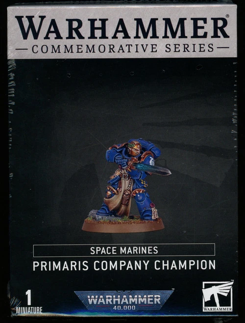 This multipart plastic kit builds a Primaris Company Champion – a skilled fighter tasked with upholding his Company’s martial prestige. He wields only a master-crafted power sword, held in two hands, marking him as an all-out melee specialist. The decorations on his armour and blade speak to the Champion’s many victories, such as the Indomitus iconography decorating his sword’s guard and hanging from his left wrist. His aggressive stance depicts a warrior ready to take on the challenge of the next contender.