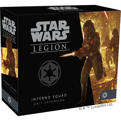 These special forces units consist of the finest soldiers the Empire has to offer and are trained in every form of galactic combat, from piloting starfighters to boots-on-the-ground combat in any environment in the galaxy. Even in this elite company, one group stands above the rest: Inferno Squad. Soon, youâll be able to dispatch your own groups of ruthless warriors to protectâor buryâthe Empireâs secrets with the Inferno Squad Unit Expansion for Star Warsâ˘: Legion!