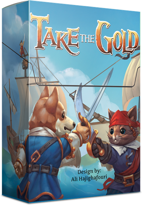 Take the Gold is a 2-6 player draw-and-play light bluffing card game that can be learned in under two minutes. Players try to be the first to collect four gold coins by using pirates to steal coins from other players. Officers can be called in to stop the pirates, but be prepared for The Kraken who could wipe out everything they have! Games are quick paced and play in less than ten minutes.